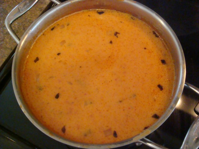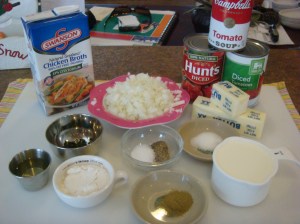 My family loves tomato soup, but having it out has kind of ruined the simple canned Campbell’s version for me.  My favorite is at a local chain called Fatz, which is a horrid name for a restaurant.  I digress.  The Tuscan Tomato soup is so amazing there.  Imagine my surprise when one of the waitresses let slip that they don’t really make it in the kitchen, but that it comes in a huge bag they warm up.  I figured if they could make that taste good, whatever I did in the kitchen would taste good, too.  And for once I was right.