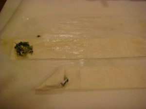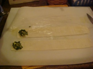 Place 1½ tablespoons of the spinach mixture in the bottom of one of the rectangles.