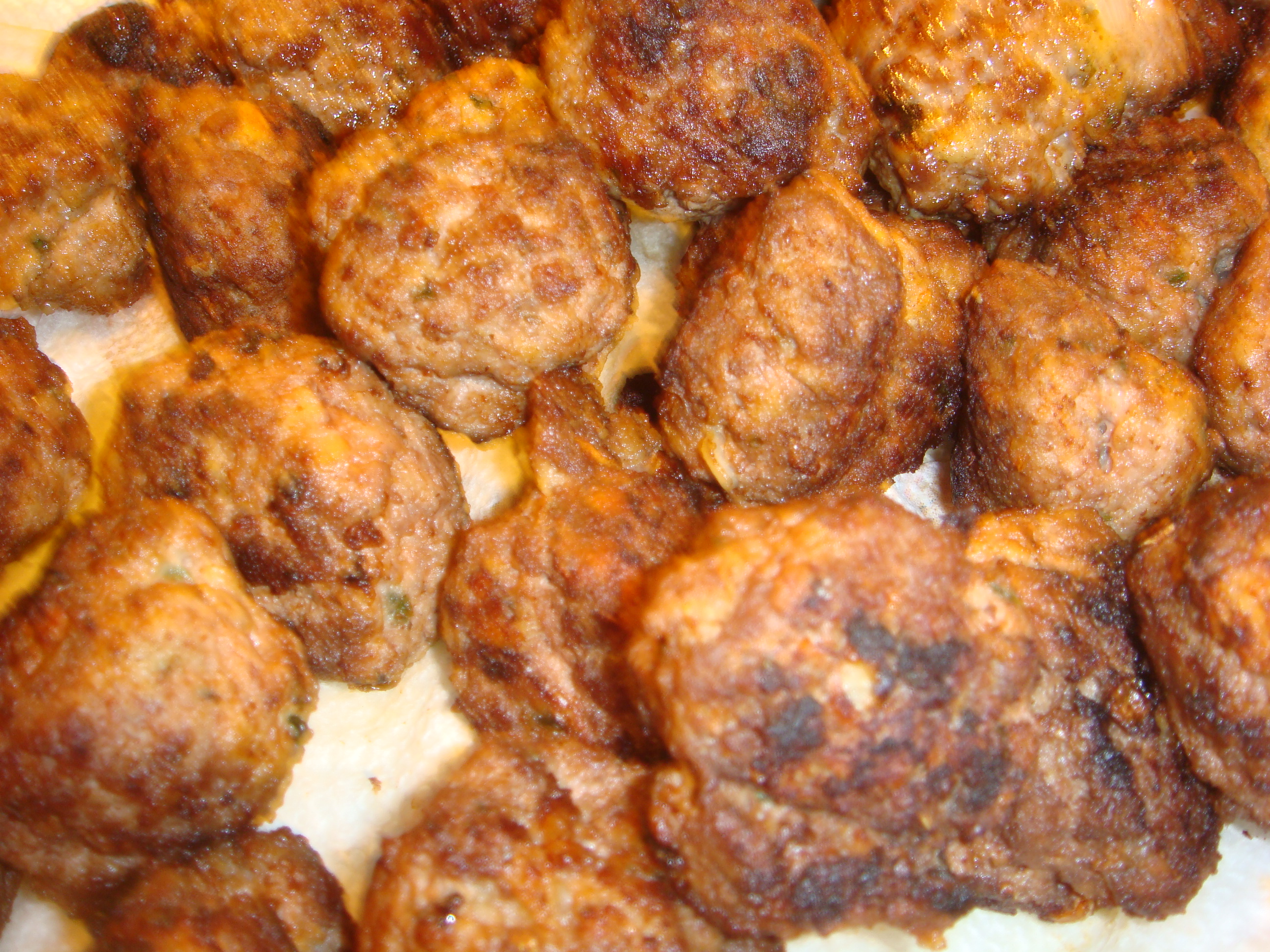 - Fry meatballs in oil, rolling frequently, until evenly browned and juices run clear.