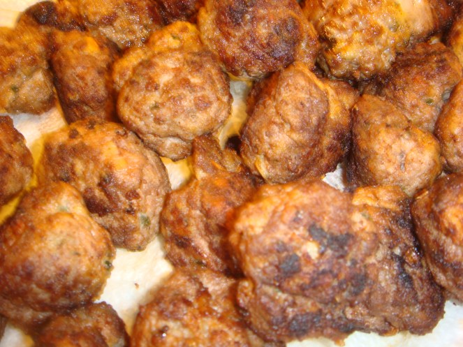You can also bake or broil these if the frying part is too much of a hassle– I use my broiler pan if I bake them, so the fat drips down and away from the meatballs.