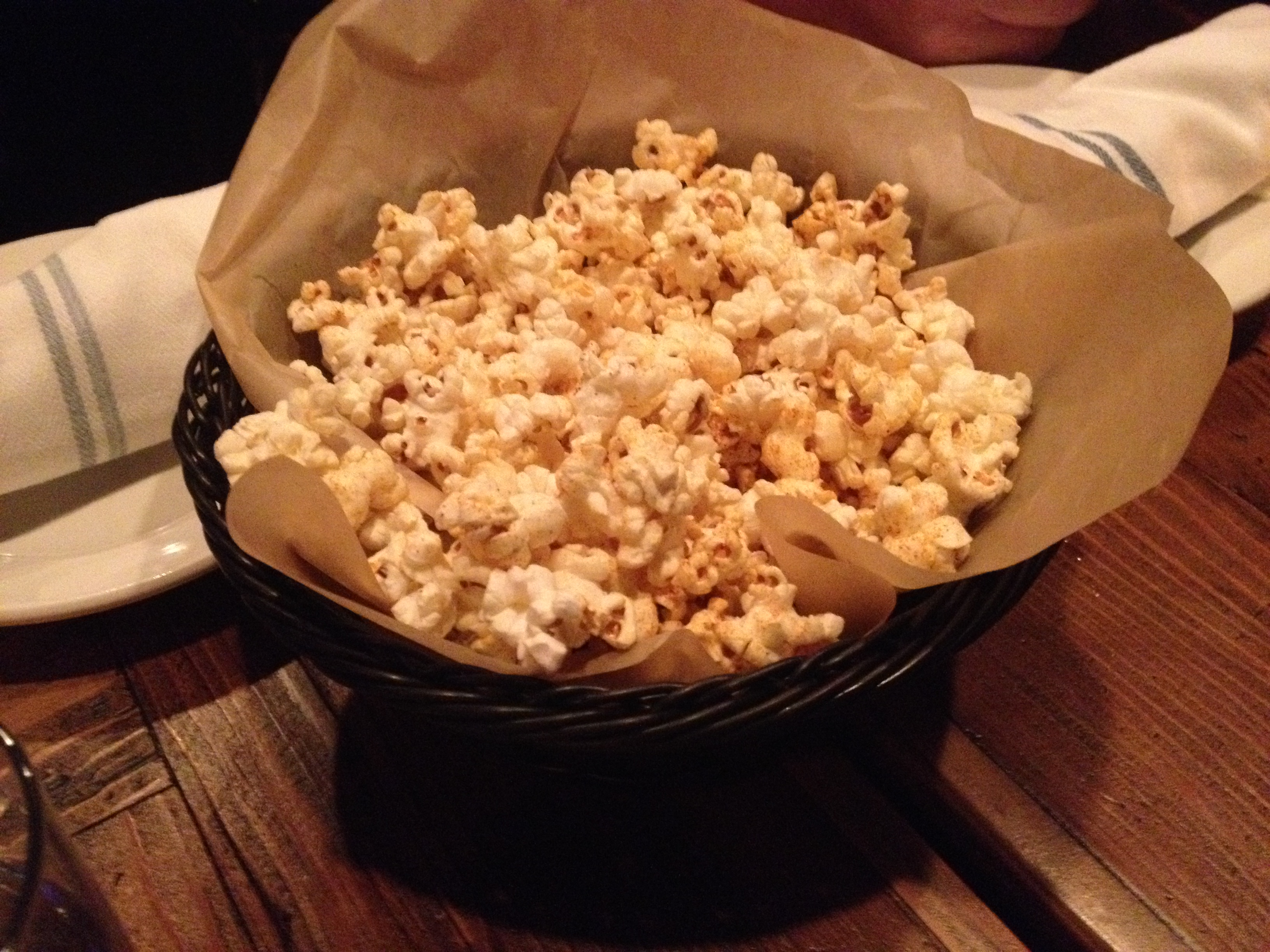 Before he even got back with our drinks, we were seated at our table. We were by the bar and near a large party, so the noise level was a bit loud for me, but this time of year, that is to be expected. We were brought our *free* drinks and some yummy chipotle spiced popcorn for the table. It was a welcome, and somehow hip change from the normal bread and butter. The drinks we tried included (but were not limited to) Farmhouse lemonade and the Cadillac Jalapeno Margarita. All were pronounced yummy, but they are a little on the pricey side. Please remember, the food is a bargain, so they have to make their money somewhere!