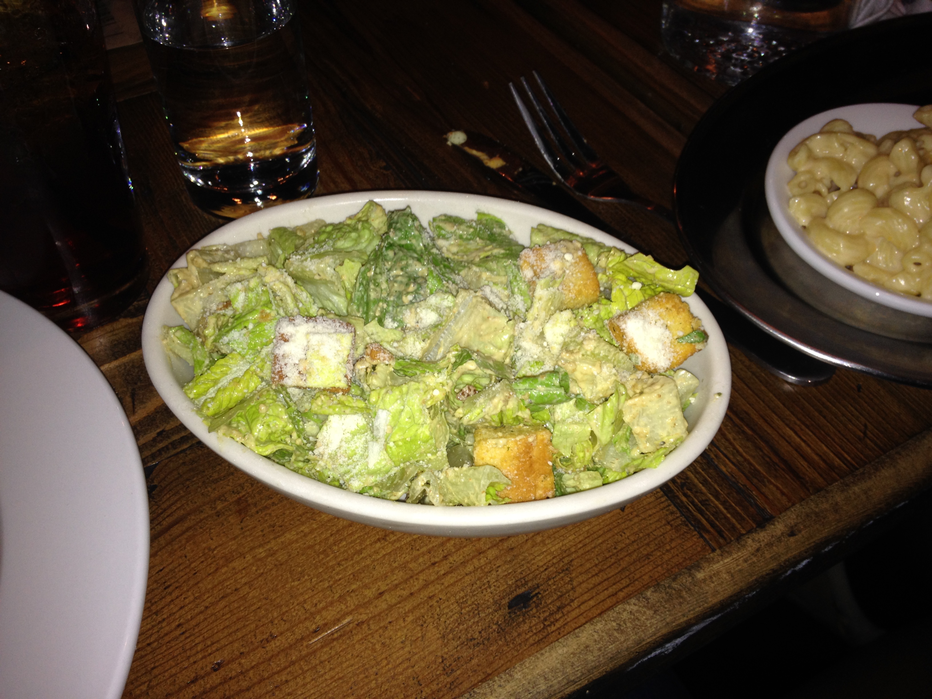 My dinner came with 2 sides, so for one of my sides I opted for a Caesar salad. The romaine lettuce was chopped into bite sized pieces making it simple to eat, which pleases me greatly. The dressing is very tangy and it is served teeth-chatteringly cold. Sprinkled atop it all was grated Parmesan cheese which gave it a salty bite to perfectly contrast the croutons. I loved it.