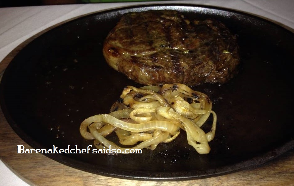 So, no way we could eat more, right? Wrong. Here come the steaks…Dustin opted for the dry aged Ribeye with chargrilled onions. It was so flavorful with a crusty outside and a tender interior, cooked perfectly. Chargrilled flavor was very prominent and wonderful.