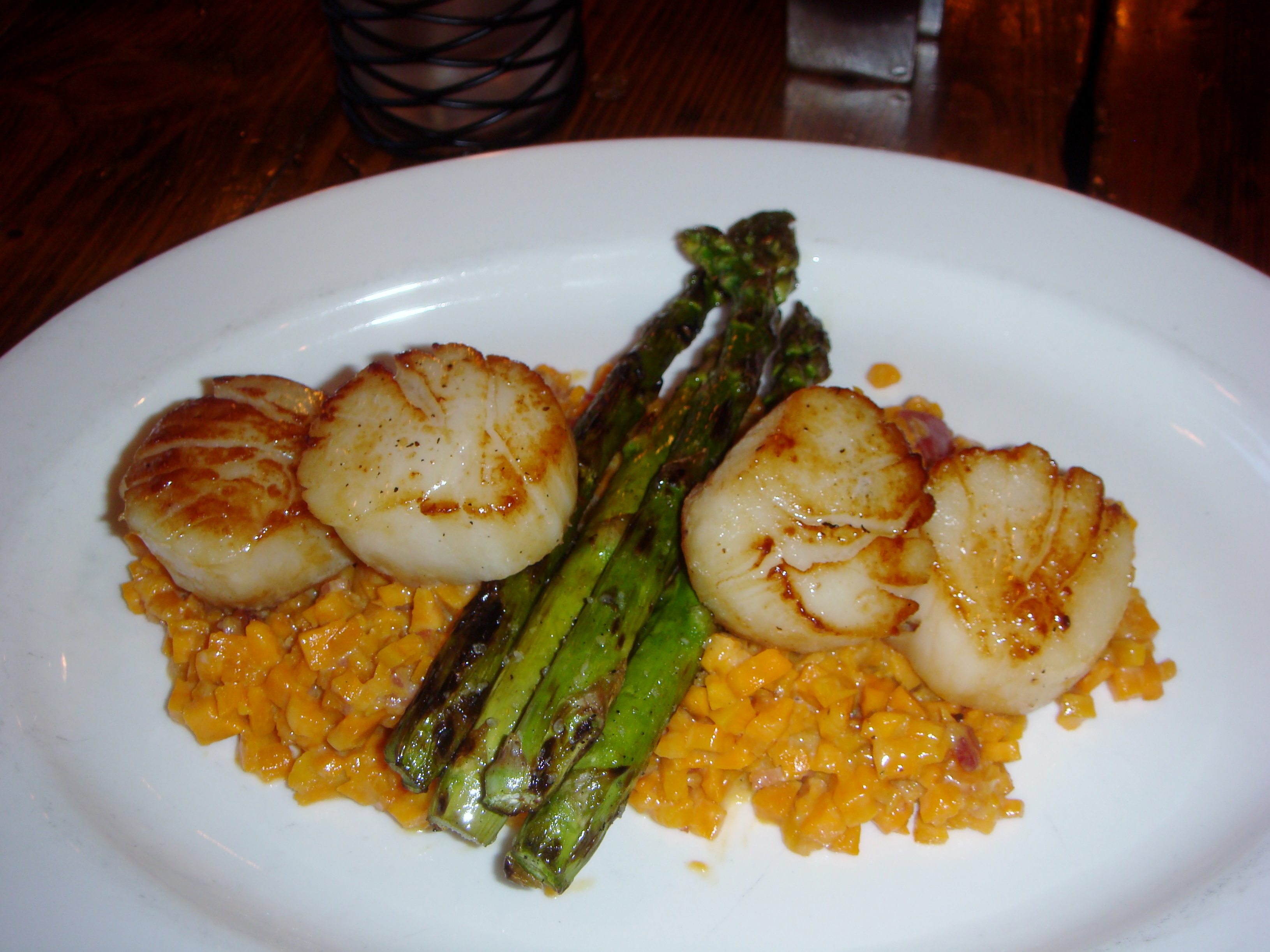 The Seared Scallops were just fine. They did have a nice sear, but were not seasoned as well as we’d like. The sweet potato risotto that they were atop was delicious. The grilled asparagus were nicely cooked. The dish was fine, but not particularly memorable.