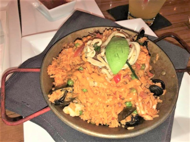 For my entree, I chose the paella with seafood. It was as flavorful as everyone before has stated, but maybe a little heavy on the peas! I could taste the smoky paprika, and most of the seafood was very fresh, but I did have one calamari ring that was a bit fishy, so I took the rest off. The shrimp were delicious.