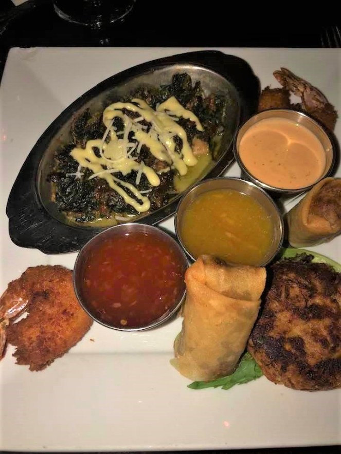 We got two appetizers: The Seafood Sampler and CRAB DIP. The seafood sampler had oysters Rockefeller, a crab cake, spring rolls and coconut shrimp. The sauces tasted like they came out of a jar. The Oysters Rockefeller was served in a dish, not on the shells, so I was questioning if they were even fresh shucked oysters. Not pleasant. The crab cake was not great, very heavy on filling and lighter on crab. The spring rolls were inedible, with the noodles inside providing a weird texture. The coconut shrimp were the best things, and they were really not that great either. I was thoroughly disappointed in that dish and would never get that again.