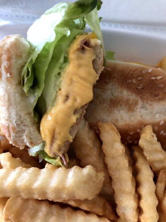 Open until 6pm Monday – Friday.  Hamburgers and sandwiches. Pick up at the door