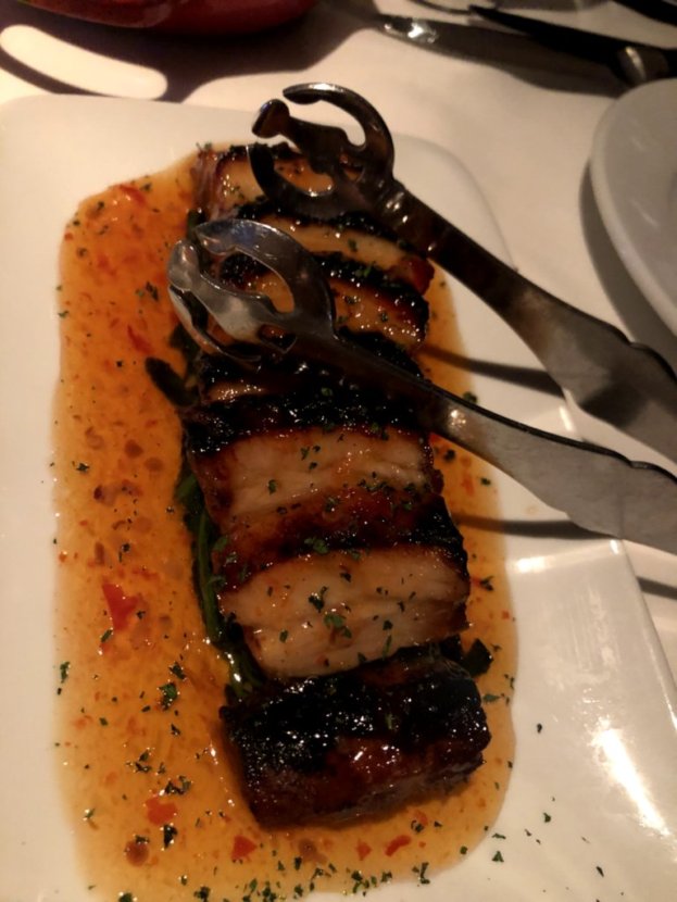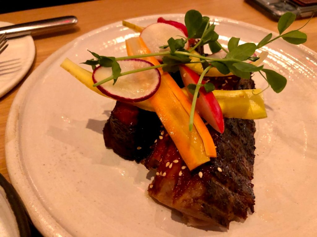 Pork Belly with Chilean Andes Arrope glaze, spring pickles from Stoke in Charlotte