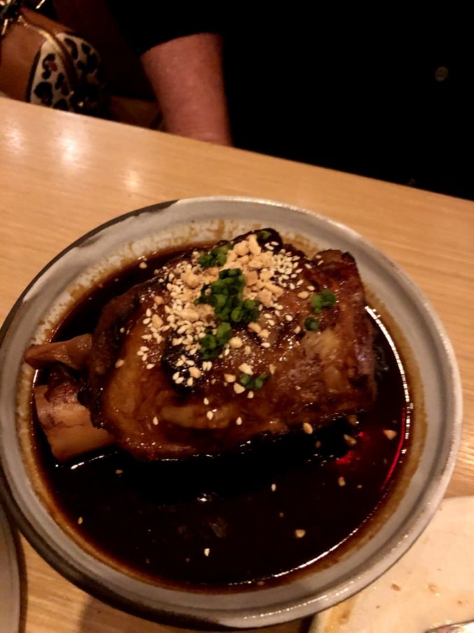 STICKY PORK SHANK Chile-sorghum glaze, peanuts, toasted sesame seed from Stoke in Charlotte
