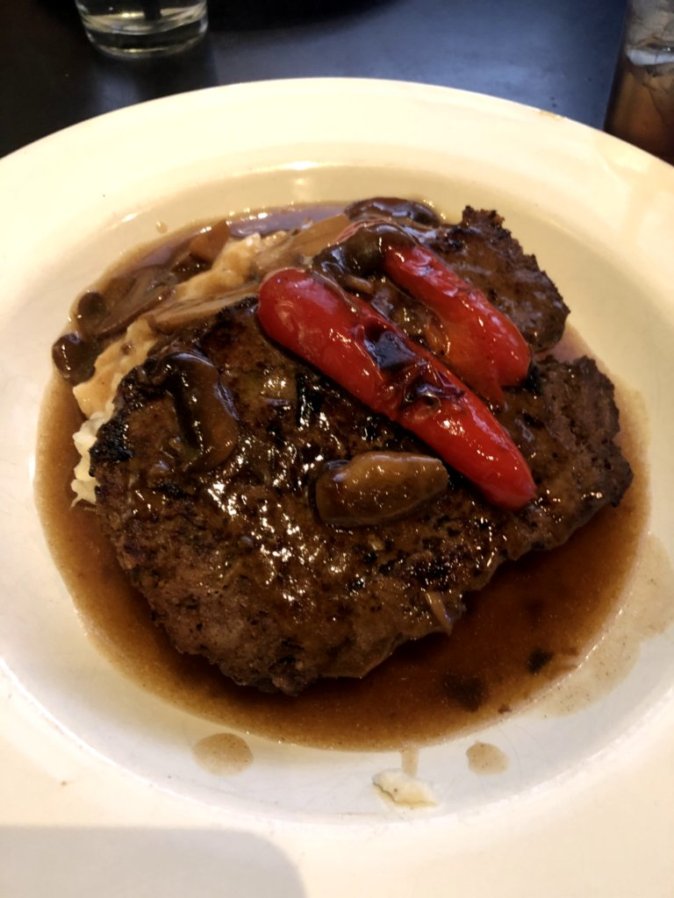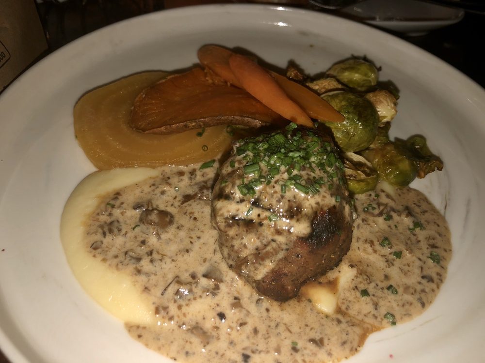 The salted caramel cheesecake was amazing! Smooth and creamy with a brownie bottom atop a squiggle of that caramel. And the size really wasn’t overwhelming. Perfect!