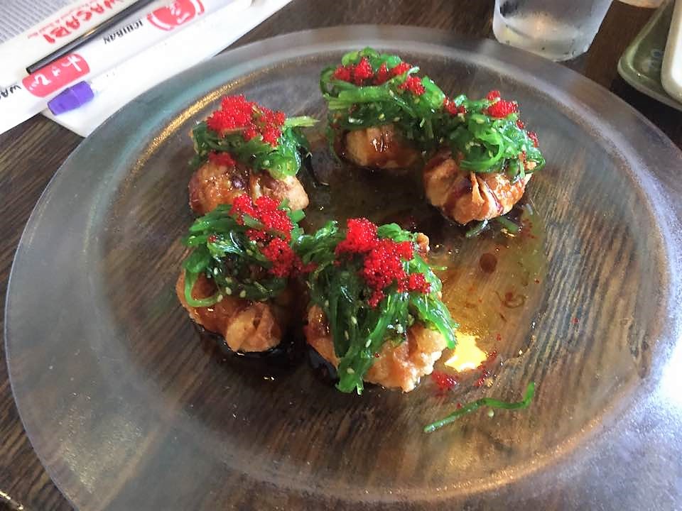 We had spicy crab rolls, bento boxes and garden salads with ginger dressing. We loved the sushi so much! Small rolls, and perfectly flavored. The salad was refreshing with real ginger in the dressing. The bento boxes came with a spring roll, 3 pieces of a California roll, steamed rice and your protein. We tried Katsu chicken, Katsu fish and Shrimp Teriyaki. We all agreed that the chicken was best.