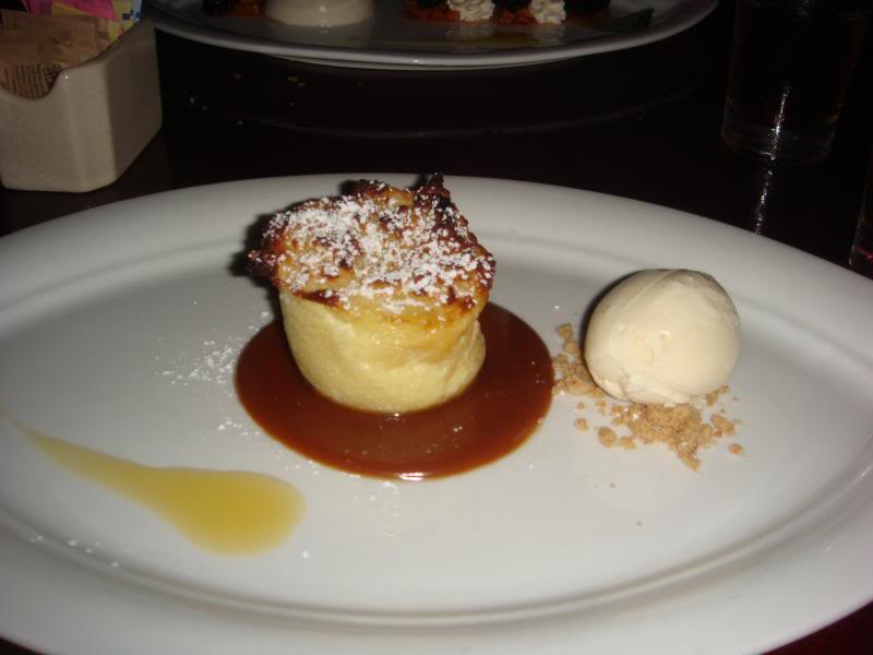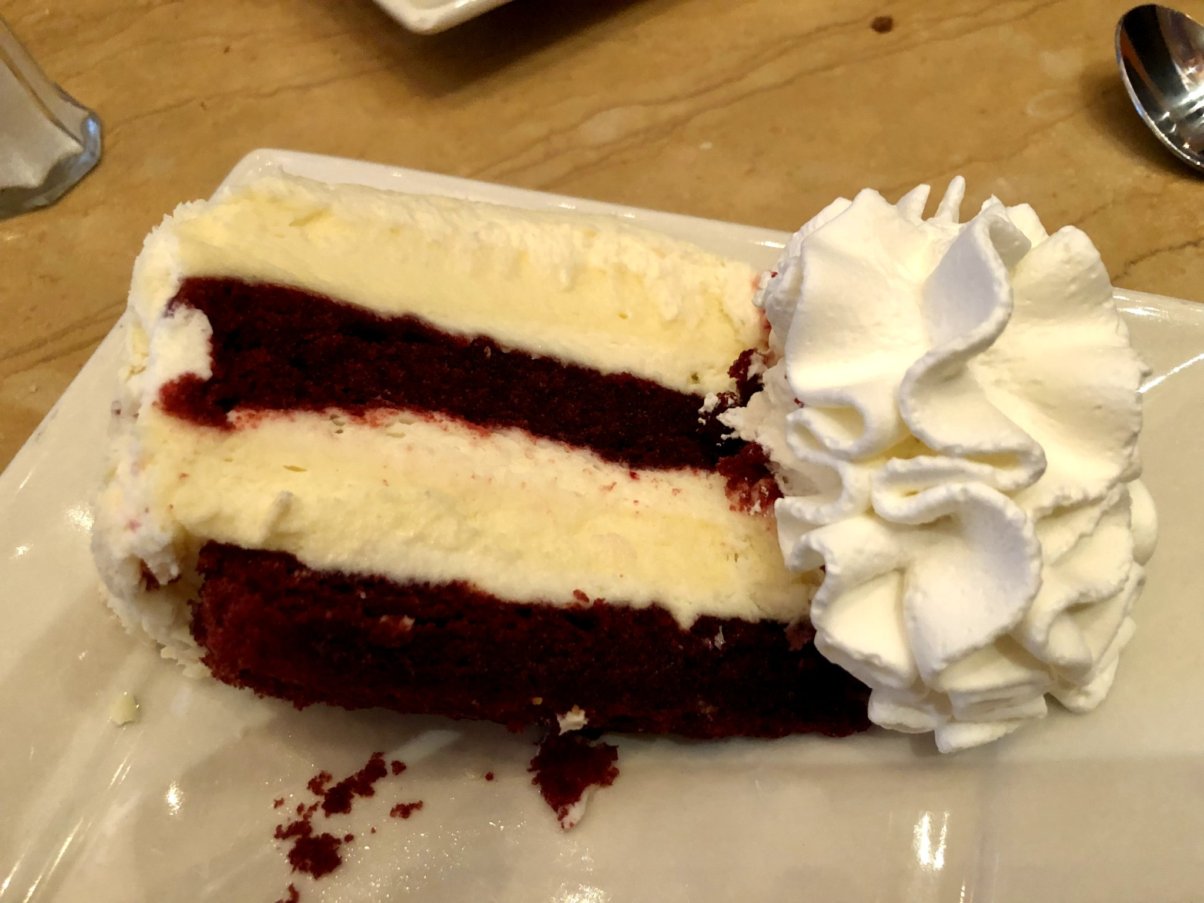 My entree was a petite filet stuffed with lobster, lump crab meat and tomato basil. It came out with a half lobster tail protruding from the center of this succulent filet with some crab meat jammed in the center hole the lobster created and drizzled on the plate. The lobster was a bit under-cooked and not very fresh. The crab meat that was supposed to be “lump” was certainly not jumbo lump. Even more horrible was the fact that it was mixed in with this very strongly flavored chopped raw tomatoes with basil. This delicate crab meat was completely overwhelmed by these aggressive flavors and just did not work. Perhaps the worst offense was in digging the crab meat from the center of my filet and seeing it pink because it was drenched in the bloody juice from my steak. The steak itself was fine, but I’d order it alone next time. It was a grave disappointment. My other dinner companions complained that there steaks were not tender; they had ordered the Cowboy Ribeye. I got macaroni and cheese for my side dish, which was described as a deluxe side, and therefore came with an added cost. The cheese tasted like a processed American cheese with some sort of Mexican flair, perhaps Rotel tomatoes? Skip this.