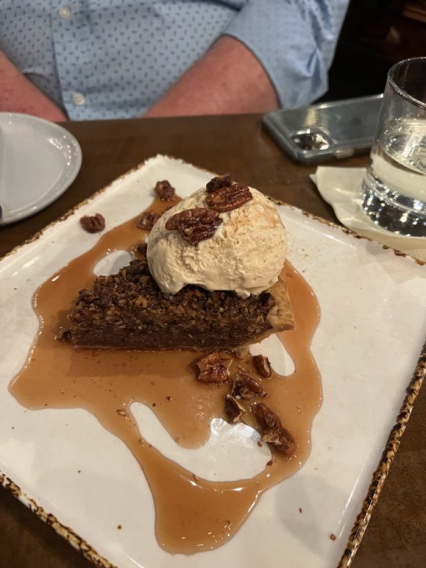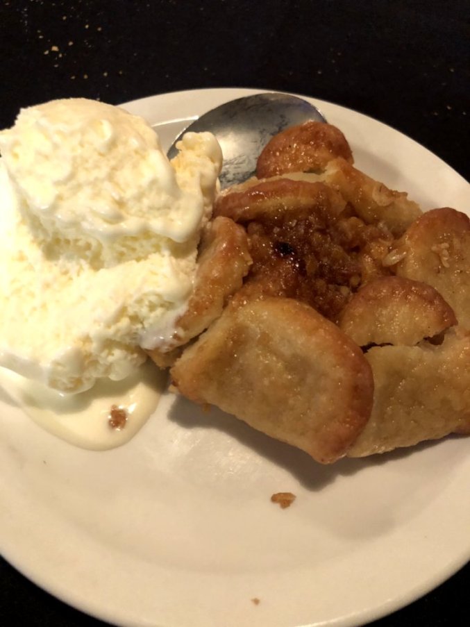 The only bad thing I can say about this little gem is the food was not the best. And unfortunately, the food is the most important part of a dining experience. We began with a variety of appetizers at our table, but I only tasted the Spinach Artichoke Dip with Pita Points. It was really good, not anything extraordinary, but very good. My next course was a wedge salad, and it was just ok. I did like that the dressing was homemade, but the canned potato sticks on top were just pedestrian. Next time I’d get the Caesar salad, I snagged a bite of my husband’s and it was good. Plus, it had black olives! Who does that?