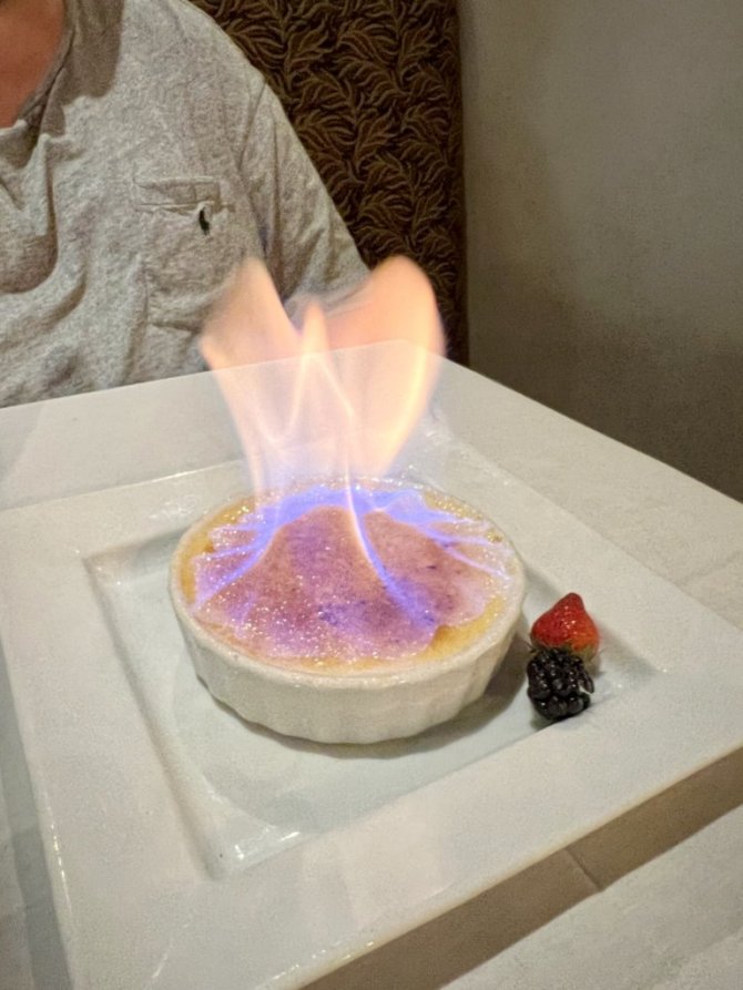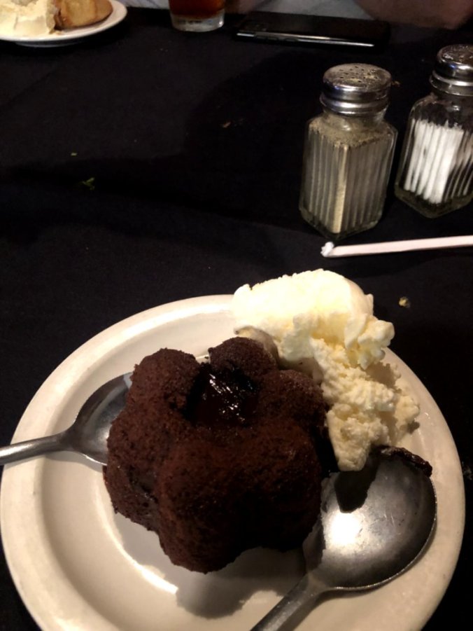 Dessert was fine enough. Most of the offerings were uninspired, nothing on the menu grabbed my attention. I opted for the chocolate cake, hoping for a moist cake, but was vaguely disappointed. It was serviceable, but nothing I’d get again. My husband got the chocolate creme brulee and it was reminiscent of chocolate pudding with a hard sugar crust.