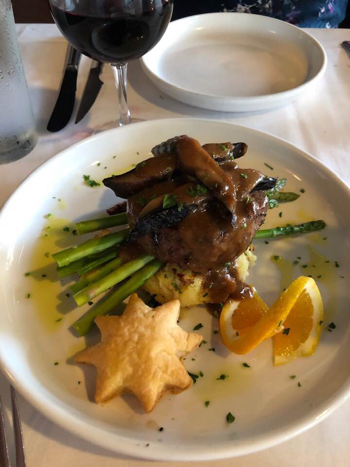- Interesting menu offering: Mediterranean Cod Artichokes, Spinach, Lemon Butter Sauce, Capers