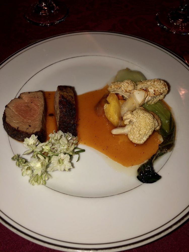I had the Pheasant Pot Pie. It was surprisingly good, but I’m not sure everyone would like it as much as I did. The filling tasted a little “gluey” but it was so flavorful I overlooked the somewhat unpleasant texture. The pheasant itself was cooked beautifully, and tasted like…wait for it…chicken. But incredibly flavorful and tender chicken! The pastry shell was flaky and perfect. I also loved the accompanying vegetables with just a bit of char on them. My only real criticism was that the whole dish lacked salt and it wasn’t provided on the table. That is a bold move on a chef’s part, and in this case the move was the wrong one. Chefs: put salt and pepper on your tables. We won’t think less of you for it.