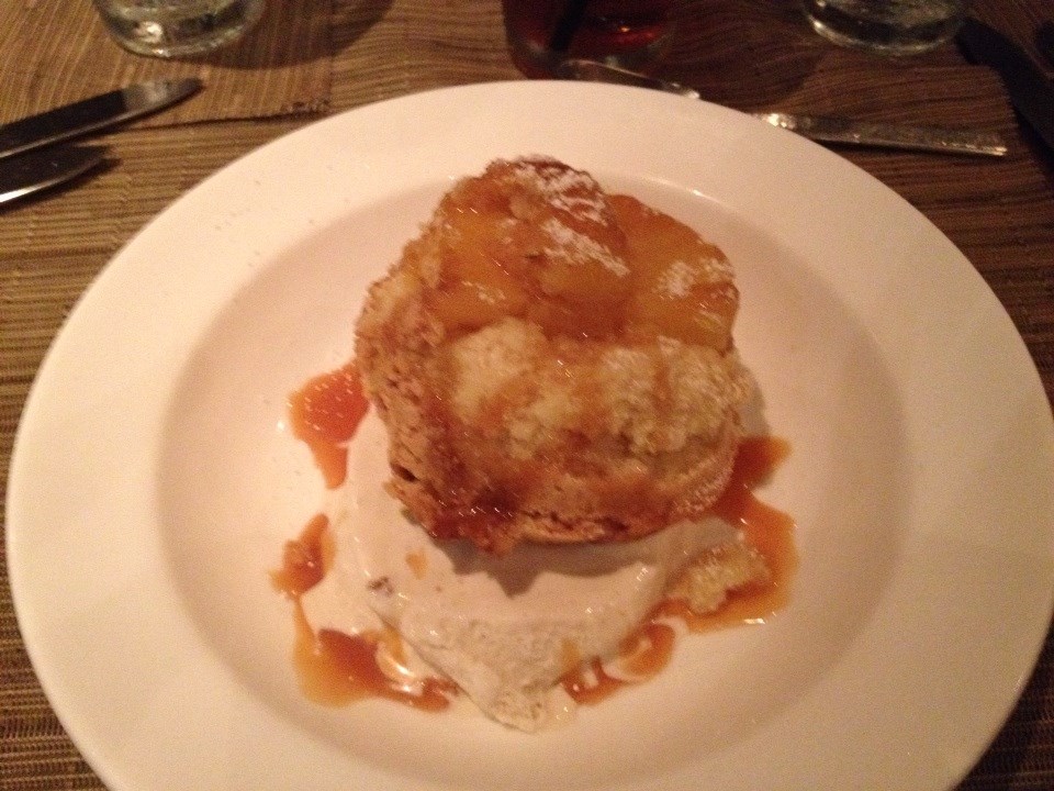 The other dessert was a Pineapple Upside Down cake. This was the star of the show. It was topped with a delicious vanilla bean ice cream and caramel sauce. Out of this world fresh and good. It was served warm, too.