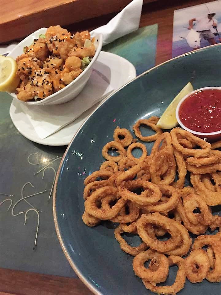 The harried waiter arrived, and brought us drinks and took our order. I was promised homemade dressing with my salad. My side salad arrived not long after, but the dressing was clearly bottled. Yuck. No biggie. I ate it, and did not complain. We waited on for the appetizers, with the kids starving. They apologetically brought us hushpuppies, but said the kitchen was so backed up. On we waited. My husband’s sushi that he ordered for his entree arrives first. Over an hour after we arrived, appetizers were delivered to our table. Our friend’s shrimp was cold. My kid’s calamari was undercooked and you could taste the raw batter. My crab dip was piping hot and amazingly delicious. The drinks, however, stayed empty. Two minutes after our hour late apps get to the table, our friend’s entrees arrive. So, this left the 2 children and myself without our entrees. Our waiter was nowhere to be found, but when we did manage to flag him down, he was sweating and out of breath…so somewhere he must have been busy? I told him our problems and said “Either get the manager or take care of this yourself.” He got the manager.