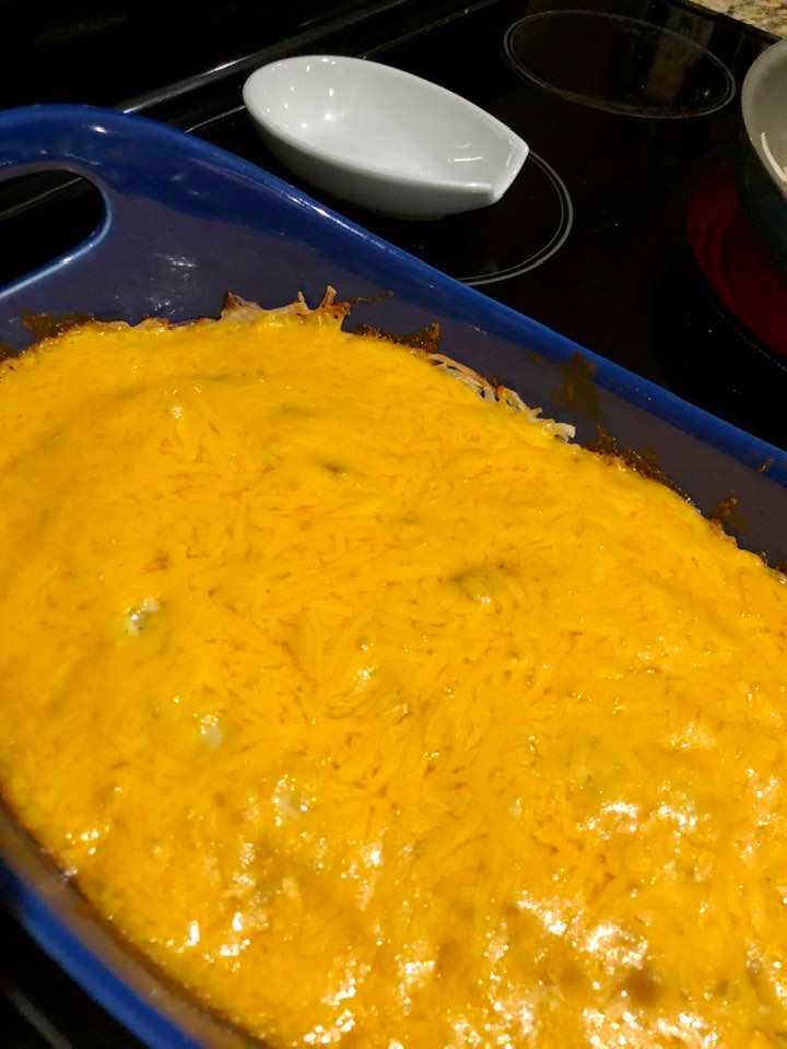 7. Add a small amount of shredded cheese and about a 1/4 cup of meat mixture.