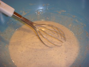 4. Add Miracle Whip into egg yolks, adding a pinch of salt, and a pinch of pepper.
