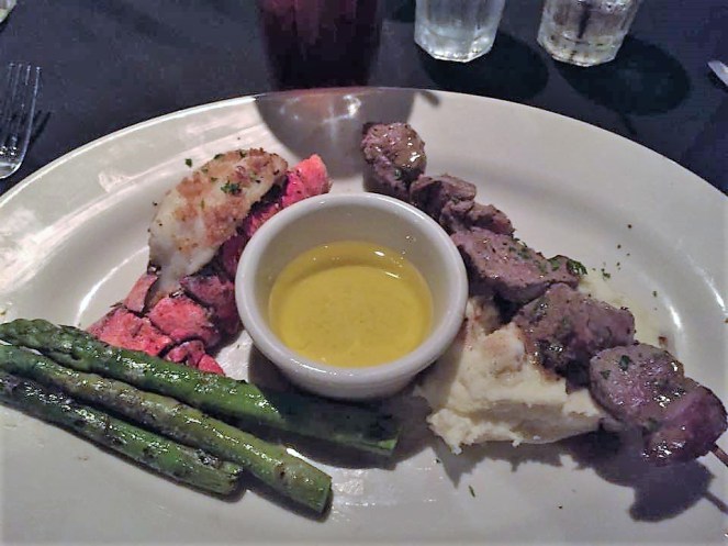We also had the Steak Diane, and it was good. Nothing special but very good. It was a well cooked steak with a creamy sauce, accompanied by roasted potatoes and those same flavorless veggies. I had a bite of the steak and determined it was nicely grilled and cooked to temperature.
