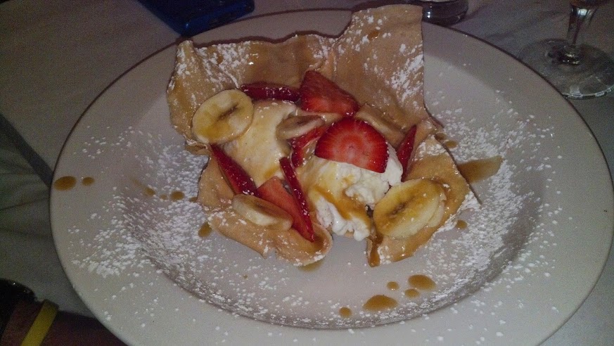 After all of that delicious food, there was just no way that dessert could compete. But, to make a completed review, we all took one for the team and ordered them anyway. I had a flourless chocolate cake which ended up being more like a Torte that a cake. It was very dense and rich and I could only eat a few bites. Dustin and Jeri got Bananas Ni Fen which is bananas in a rum glaze, reminiscent of Bananas Foster, atop a scoop of ice cream in what tasted like a Phylo dough bowl. It was fresh and yummy. Robert, as usual, got the creme’ brulee. He is a creature of habit! He pronounced it delicious.
