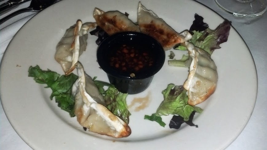 Dustin ordered Pot Stickers for his first course. The homemade stickers were filled with a spicy chicken mixture speckled with ginger and green onions. The tipping point came when we dipped the little gems into the hoisin sauce. When Dustin finished his pot stickers he poured the hoisin sauce out on his plate to sop up with his bread. It was that good!